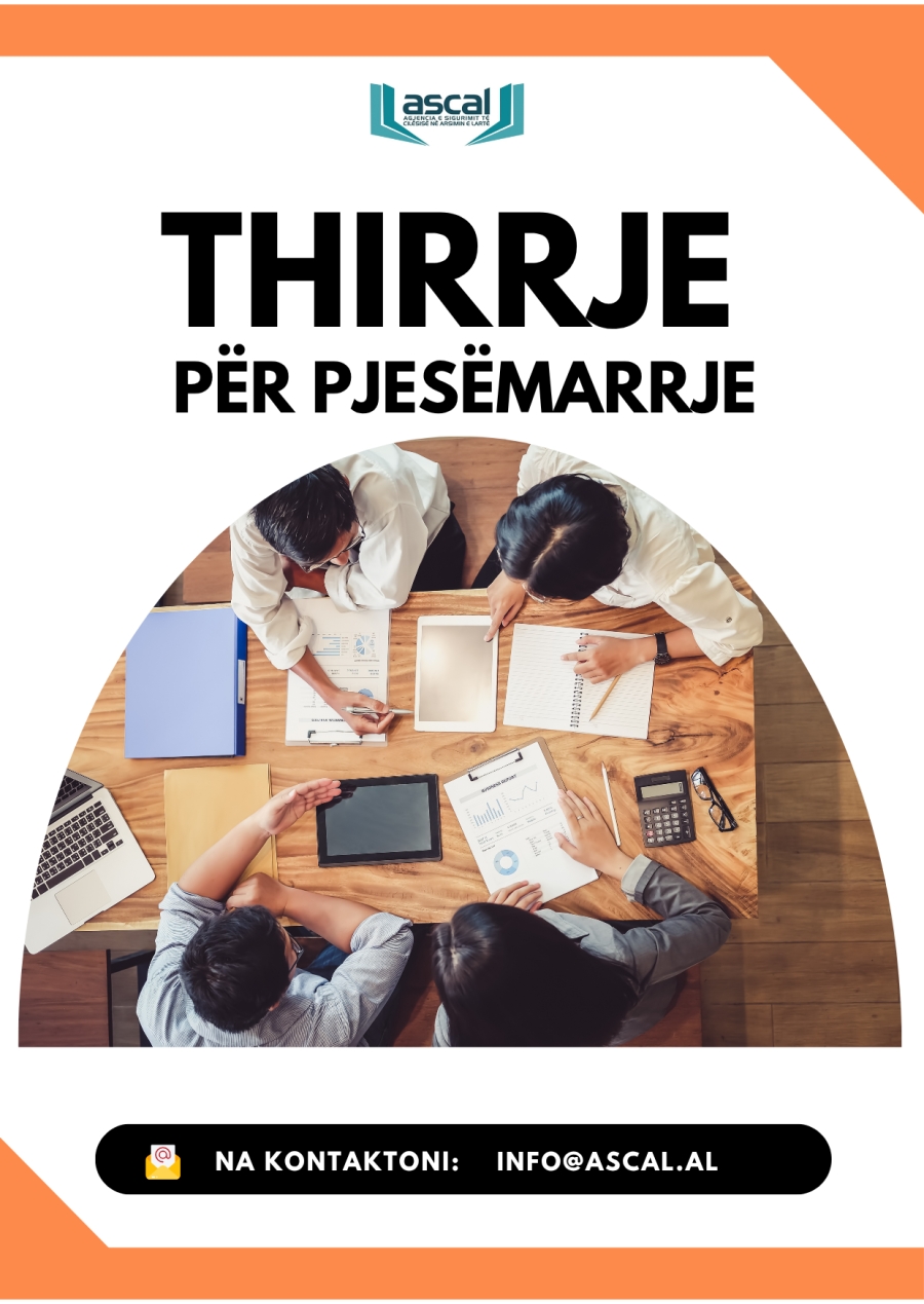 Agjencia e Sigurimit të Cilësisë në Arsimin e Lartë (ASCAL) fton të gjithë aktorët e tregut të punës dhe përfaqësues të shoqërisë civile — të shprehin interesin e tyre për t’u përfshirë në proceset e vlerësimit të jashtëm, në kuadër të akreditimit të organizuara nga ASCAL.